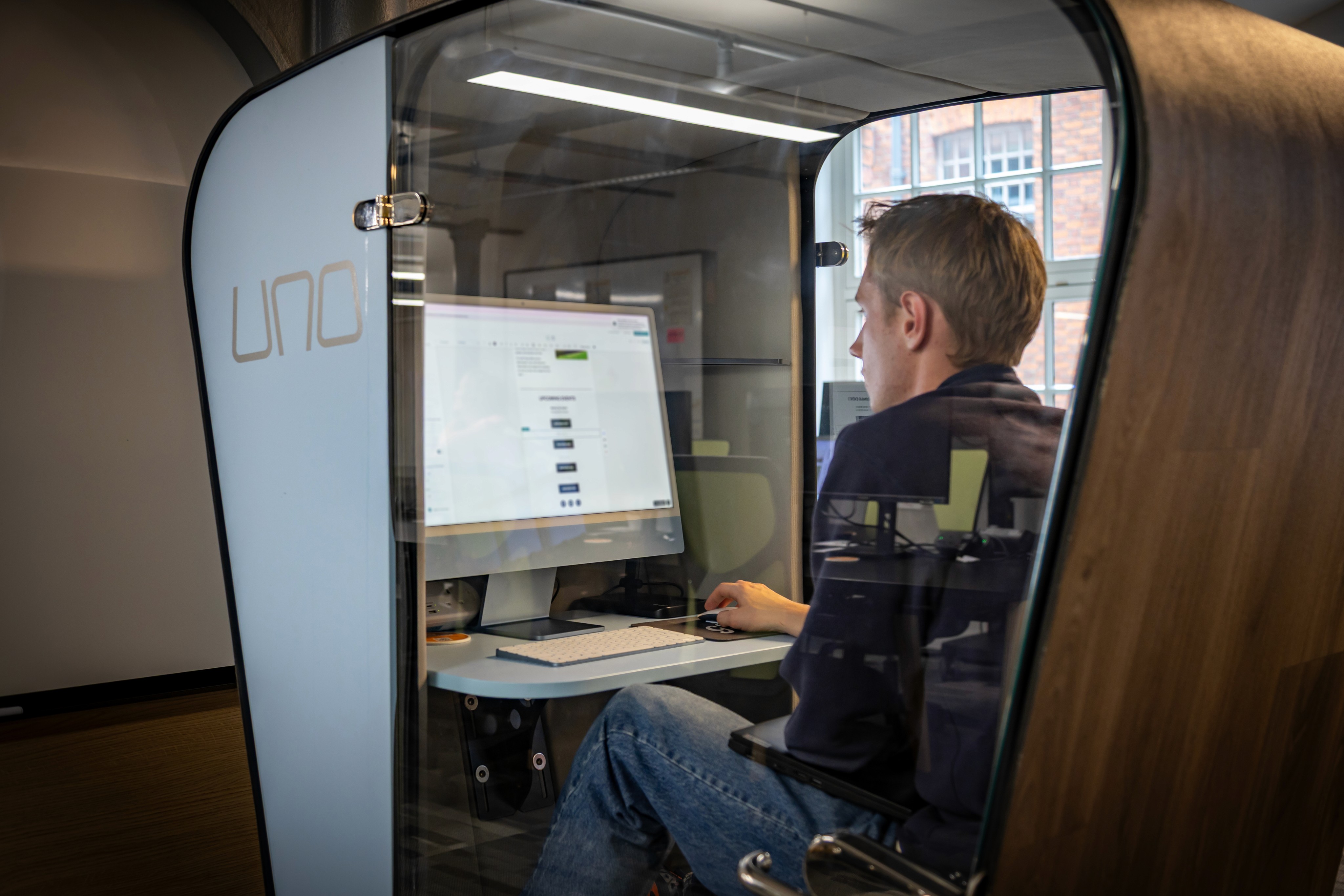 Sound Proof meeting booths, perfect for private discussions, recordings, or online calls.